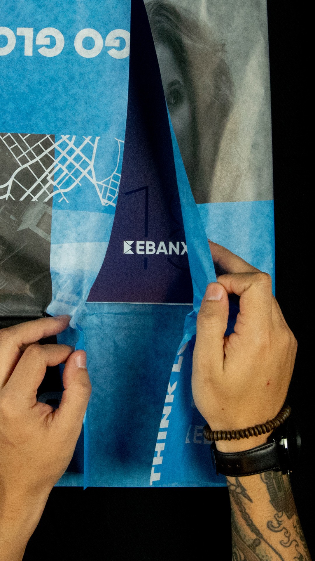 What we built around the logo was where the identity actually came together. EBANX had always had a deep connection to Curitiba: community events, local startups, real investment in the city. We used the city map as a recurring visual element. Not as decoration, but as something with meaning. A local company that broke barriers and connected Latin Americans to the world. The map represents both where the company came from and what it does.